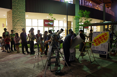 出入り口から出てきて不審な表情で我々を見ている人がいれば、すかさず優しいほほえみで望遠鏡に誘導(笑)。勧誘成功率100%でしたよ!!