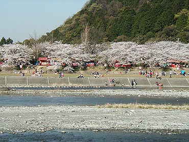| 2002年3月29日(金曜日) 雨 【強い雨で桜が散りそうです】 久しぶりに朝から風を伴った強い雨が降りました。四国の平地ではピークになっていた桜が散りそうです。 下の画像は一昨日愛媛県に桜を見に行ったときの1枚です。高知県から四国山地を越えて愛媛県西条市に下ると、国道11号線に合流する直前にこのような桜の名所を発見しました。たくさんの露店が出ていたのですぐに名所だとわかりました。たしか武丈公園というのでしたか?特に目的地があったわけじゃなくて適当に車で走り回ろうと思っていたら発見したのでよく名前は覚えていません。川の手前にも同じようにみごとな桜を植えているのですが、こちらは露店は出てなくて静かに楽しみたい人たちがお弁当をひろげたり写真を撮っていました。 こんな見事な場所にめぐり会えるとは思ってなかったのでお弁当もお酒も持ってきていません。しかたないので(本当は計画的に)近くにあるアサヒビールの工場の隣にあるAsahiビール園に行ってジンギスカン料理と搾りたてのアサヒ黒生をグビグビ飲んできました。これはむちゃくちゃ美味しかったです!! 桜よりもビールの方に感激したと言う説もあります。え?飲酒運転で走り回っていたのかって?ちゃんと運転してくれる人はいましたよ。 |